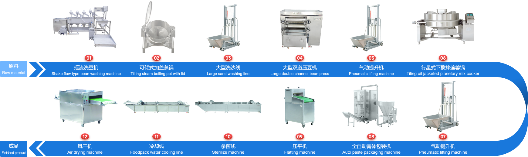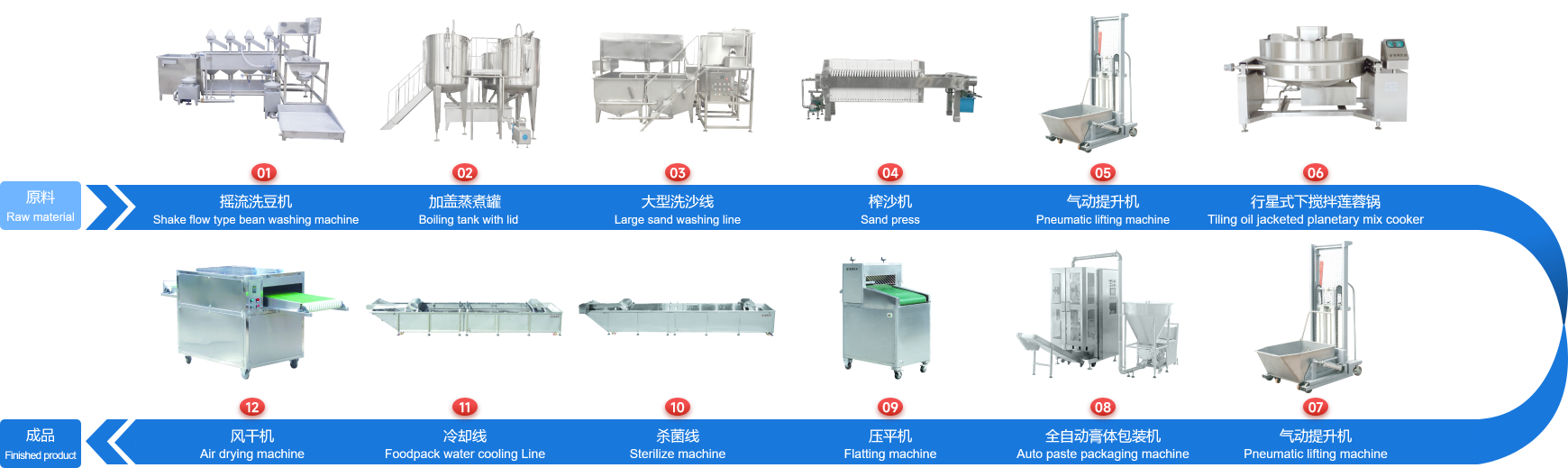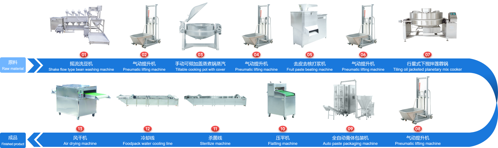 企業經多年研制開發(fā)的下攪拌可傾式蓮蓉鍋、下攪拌夾層鏟鍋、可傾式蒸煮鍋、去皮去核打漿機、立式熱抽真空包裝機、餡料風干壓平機、餡料冷卻線、江米條成型機、循環(huán)過濾油炸鍋、下出料脫油機等設備在國內同類設備中達到綠色環(huán)保標準,已報國家專利局和有關部門申請認證,成為企業的品牌產品,深受廣大客戶的支持和信賴。
